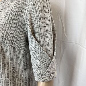 I am in love with detailing of these sleeves. So unique and stylish. This stunning black and white tweed top is by Banana Repiblic in a size small. Like new condition