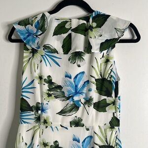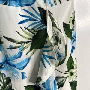 Banana Republic white green and blue faux wrap floral raffle high low maxi dress size 2 new armpit to armpit 18 inches the waist 14 inches the length 53 inches
