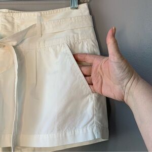 Banana Republic winter white 80’s style waist shorts w tie and pockets. Size 4