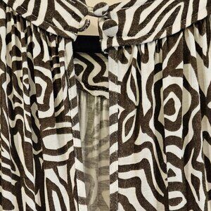 Banana Republic women's maxi summer dress. SZ S. Brown/white tropical print. Keyhole button back. Pockets. Adjustable tie front.
