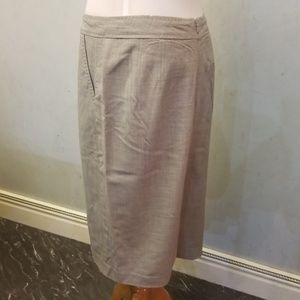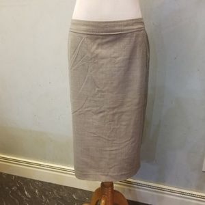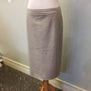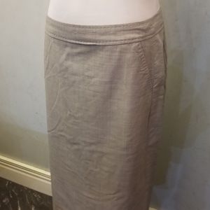banana republic pencil skirt. 97% wool 3% spandex with 100% polyester lining. the waist is15in and the length is 24in has 1 small back pocket has a back zipper. the waist of the skirt has a little snag shown in the last pic
