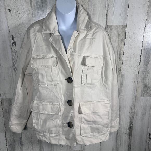 Keywords: Banana Republic jacket women small, Harbison chino jacket, utility jacket tan, light tan cotton jacket BR, Harbison BR small, transition outerwear