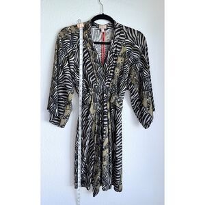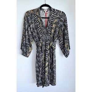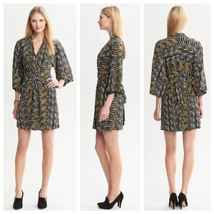 Banana Republic x Issa London 3/4 Sleeve Zebra Print Kimono Dress in Dark Olive