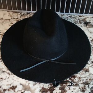 Elegant black wide-brim hat. Perfect for stylish outings. Classic design by Banana Republic.