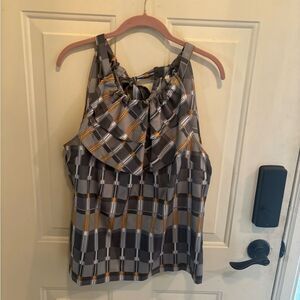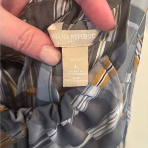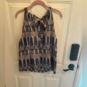 Chic plaid top with gray and yellow tones. Elegant design for versatile wear.