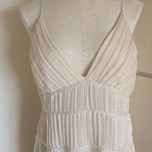 Banana Republic JACQUI Pleated Maxi Dress in Ivory, Spaghetti Strap, 14, NWOT