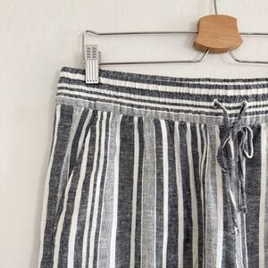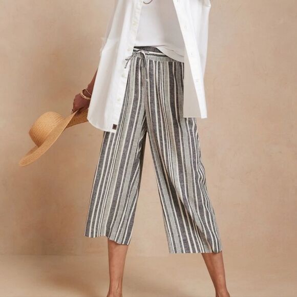 Banana Republic Linen Blend Pull-On Crop Wide Leg Pants Striped Coastal