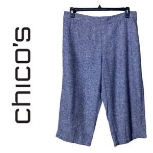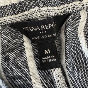 Banana Republic Linen Blend Pull On Crop Wide Leg Pants Striped Coastal Sz M