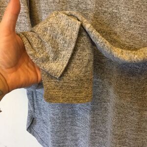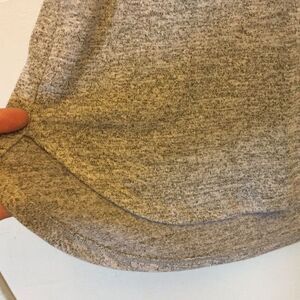 Same deal as the Hoodie. Bought it and wore once over a cami and I didn’t like the rounded bottom. Super soft and stretchy. Slightly over sized. Look great while being comfy and cozy! Even great for exercising or outdoor activities. Wear with joggers or your favorite pair of jeans!