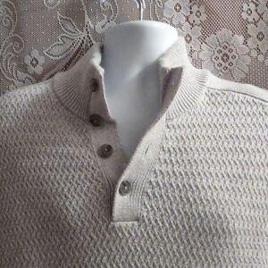 Banana Republic men's size large pullover sweater, four button front closure, woven zigzag pattern front, solid back and sleeves, 22 in pit to pit, perfect neutral, excellent condition machine washable