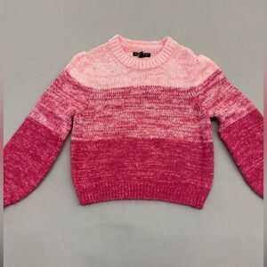 This Banana Republic sweater showcases a stunning gradient of pink hues, featuring a classic crew neckline and a cozy, textured knit. The relaxed fit and ribbed trim at the cuffs and hem make it a perfect choice for casual comfort.