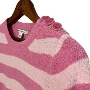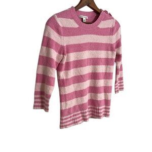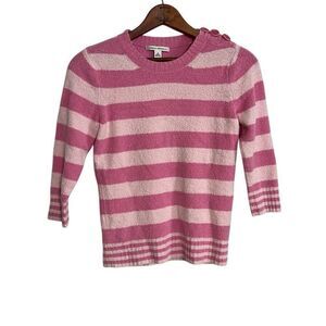 Banana Republic Stripe Crew Neck 3/4 Sleeve Knit Pullover Sweater Pink Small