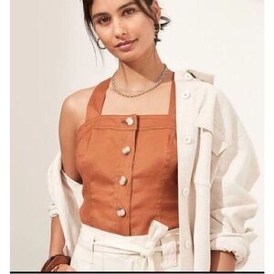 BR terracotta blouse with button-up design. Ideal for versatile styling.