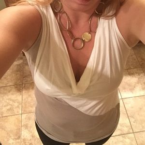 Cream on top then diagonally divided with taupe color on bottom. Great on its own or under a cute jacket. Never worn.