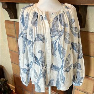 Banana Republic White Floral EMBROIDERED LINEN BLOUSE, size S