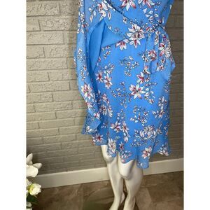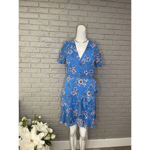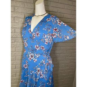 Banana Republic Women Blue Floral Wrap Summer Dress Size 4
