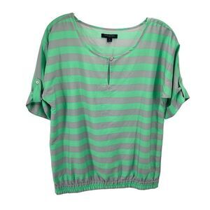 Banana Republic Womens Blouse Top Striped Roll Tab Sleeve Small Green Gray