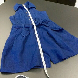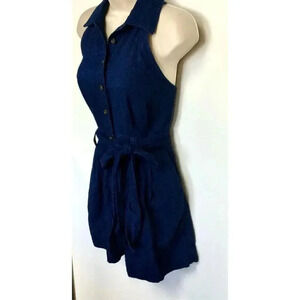 Romper, Denim, Sleeveless, Collared, Cotton, Linen