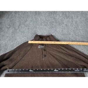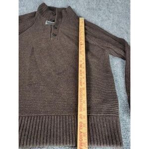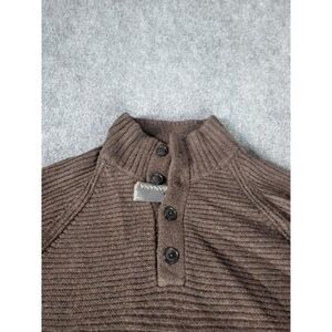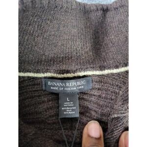 Experience timeless style and comfort with the Banana Republic Wool Pullover Sweater. Crafted in Italy, this brown, solid-patterned sweater features a 1/4 button design and tight-knit wool fabric, perfect for any occasion. Designed specifically for men, size large.