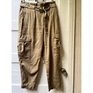 Banana Republich High Rise Khaki Paper Bag Waist Belted Cargo Pants Sz 8 Petite