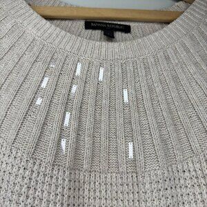 Banana Repulic Cream Waffle Knit Sweater Sequined Women’s Size Small Y2K Warm