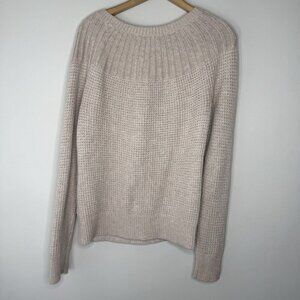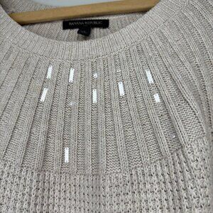 Banana Republic cream waffle knit style sweater with subtle sequin embellishments along the upper chest area. Perfect for minimalist but festive winter look. Greta for the office or casual outfits. In good preowned condition!