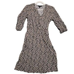 Banana Reublic Balloon Sleeve Button Cheetah Print Dress XS