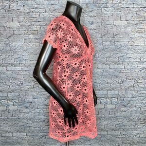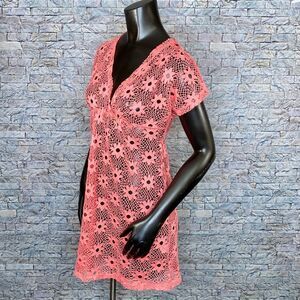Banana Split Coral Swim Coverup Size Medium Crocheted Style Sunburst Pattern