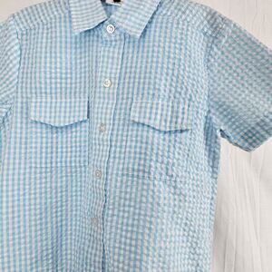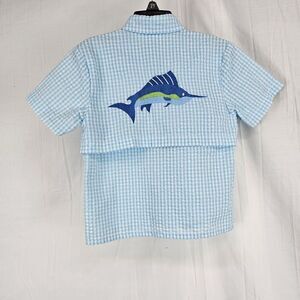 Banana Split Gingham Blue White Vented Button Down Toddler 2T Fish Sword Fish