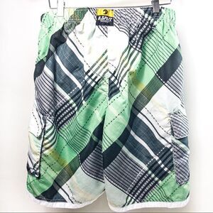 Banana Split Green/Black Plaid Board Shorts Sz XL