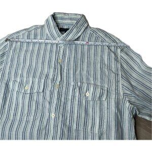 Banana republic Men’s 100% Linen Button Down Shirt Striped Blue 14.5 Small