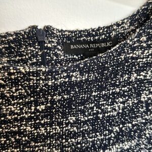 Adorable tweed style dress by Banana Republic factory size 6. Looks navy and cream colored. Great for the office. Thick material. Excellent condition. Smoke-free home.
