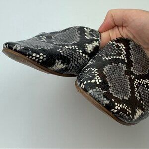 Banana republic womens flats size 7.5 black white snakeskin print python slip on mules minimalist