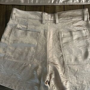 Cute high waisted shorts in a pale gold color.