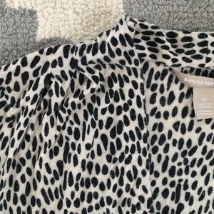 Beautiful lightweight sweater. Has nice pleated detail on shoulders near neckline (see photo) and beautiful V-neck. Small snag on on sleeve near elbow (see photo), otherwise perfect condition.