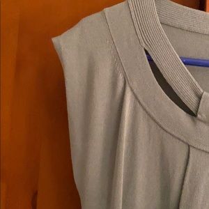 Cap- sleeve sweater dress. Beautiful neckline cutout detail. Size small. Color is dusty teal green. Cotton/Rayon blend has a slight sheen. This was never worn but tag came off.