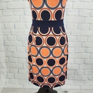 This is a women's sleeveless banana republic stretch knit geometric print dress sz xs