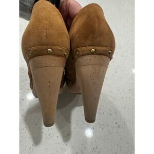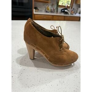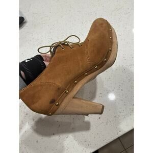 Banana republic, wood heeled camel suede booty woman’s size 9