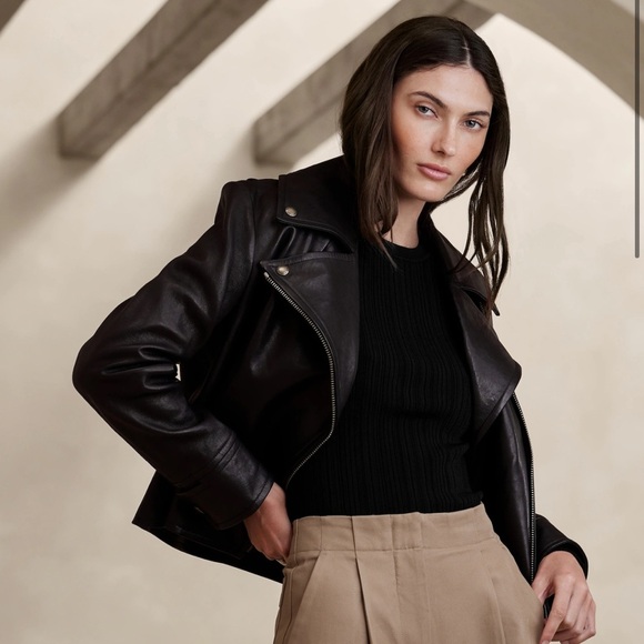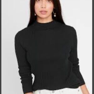 Banana republic 100% merino wool black mock neck long sleeved ribbed/line top