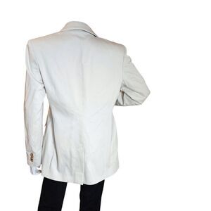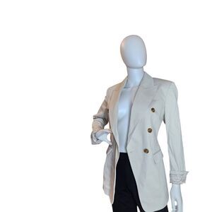 Elegant white blazer with stylish wooden buttons. Perfect for formal occasions.