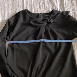 Elegant Banana Republic bow neck top in classic black - perfect for sophisticated style! Features dramatic bow detail at neckline, long sleeves, back zip closure, and luxurious fabric with timeless silhouette.