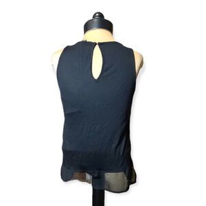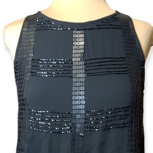 Banana Republic Black Sequined Sleeveless Top, front is lined and sequind on sheer material but lined so only bottom panel is sheer, back is knit material for comfort and stretch for a better fit. Size XS