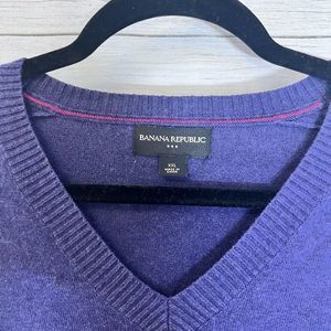 Banana Republic Dark Concord Purple 100% Cotton V-neck Pullover Sweater XXL 💗