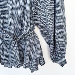 Banana Republic Factory Navy and Light Blue Ikat Long Sleeve Peplum Blouse