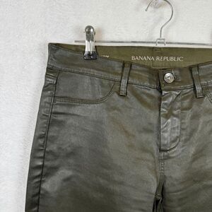 Banana Republic Faux Leather Coated Skinny Jeans Olive Green Army Size 26. Excellent condition. See photos for details and unstretched measurements. Shop my closet and bundle multiple items for discounts and one shipping fee! luxe coated sateen, military, fall winter, great with boots, heels or sandals, dressy or casual, weekends, travel, good pants