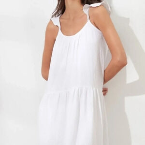 Banana Republic Frill-Sleeve Gauze Tiered Mid-Calf Dress