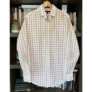 🐿️ Banana Republic Grant Fit White Red Supima Cotton Button Front Shirt Small