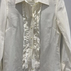 Banana Republic Long Sleeve Button Down Ivory Shirt with Ruffles size Small