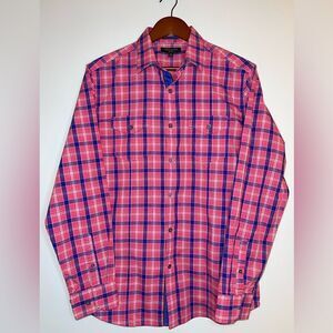Banana Republic Men's Button Down Slim Fit Pink Plaid Long Sleeve Shirt Size Medium