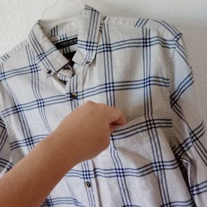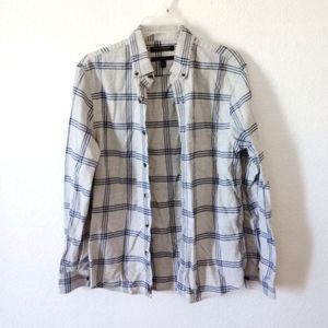Banana Republic Men's Untucked Flannel Plaid Button Down Shirt Grey size Small